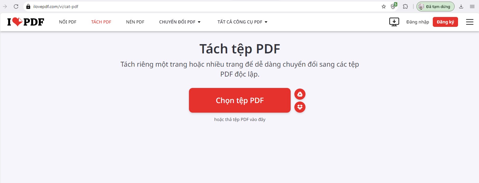 Bước 1: Truy cập vào công cụ cắt file PDF của I Love PDF tại đây.
