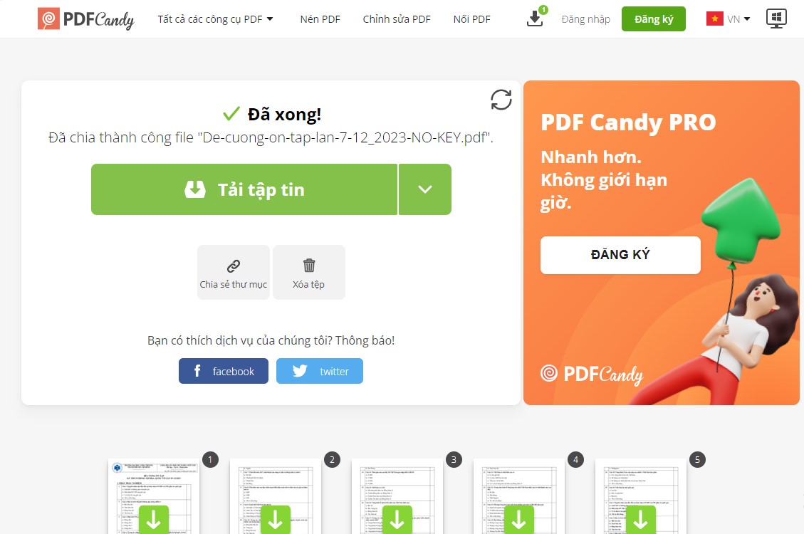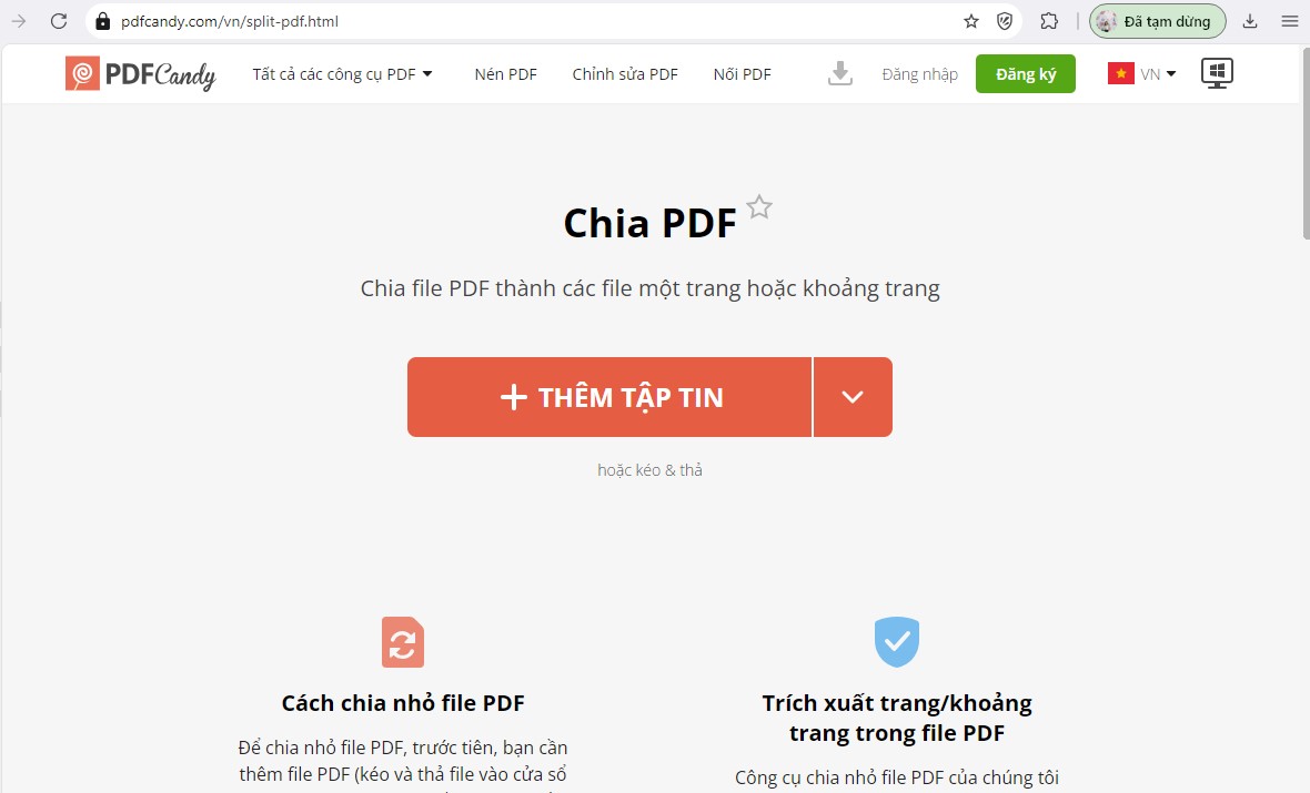 Nếu bạn không muốn sử dụng app tách file PDF yêu cầu tải về thì trình chỉnh sửa PDF trực tuyến miễn phí PDF Candy là một sự lựa chọn phù hợp. Trang web này hỗ trợ nhiều công cụ để làm việc với PDF như nén, cắt file, ghép file PDF, chuyển đổi file PDF thành các dạng file khác,...