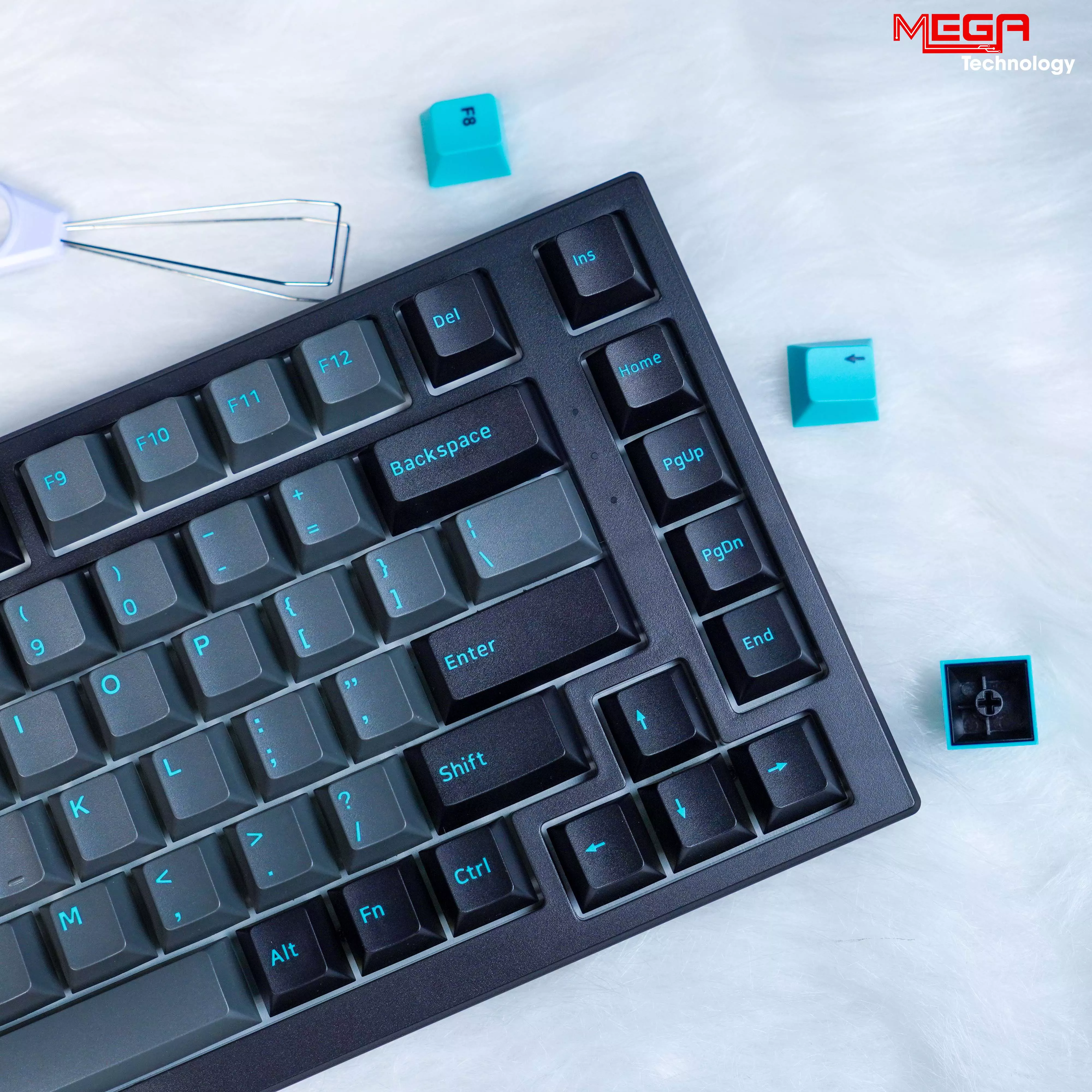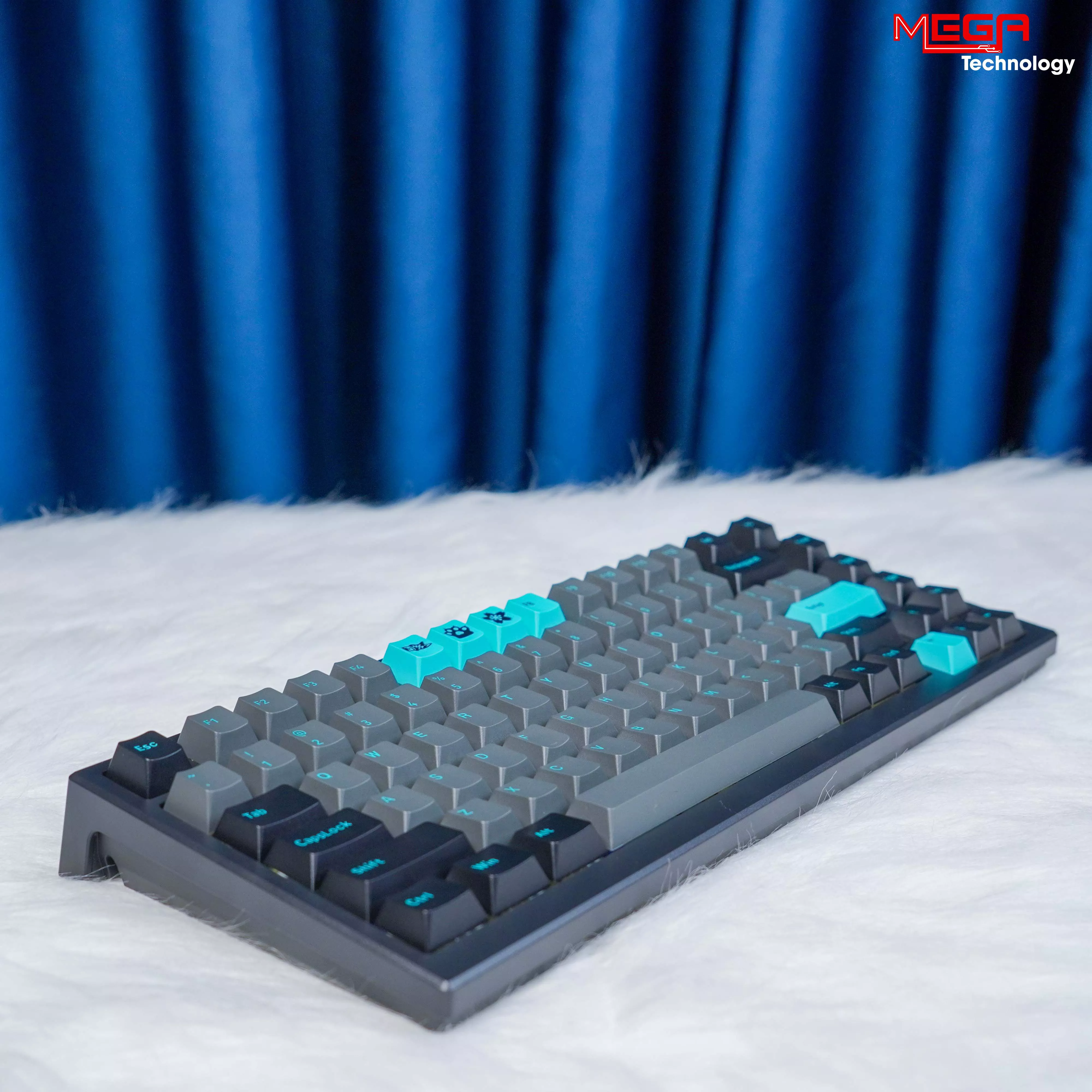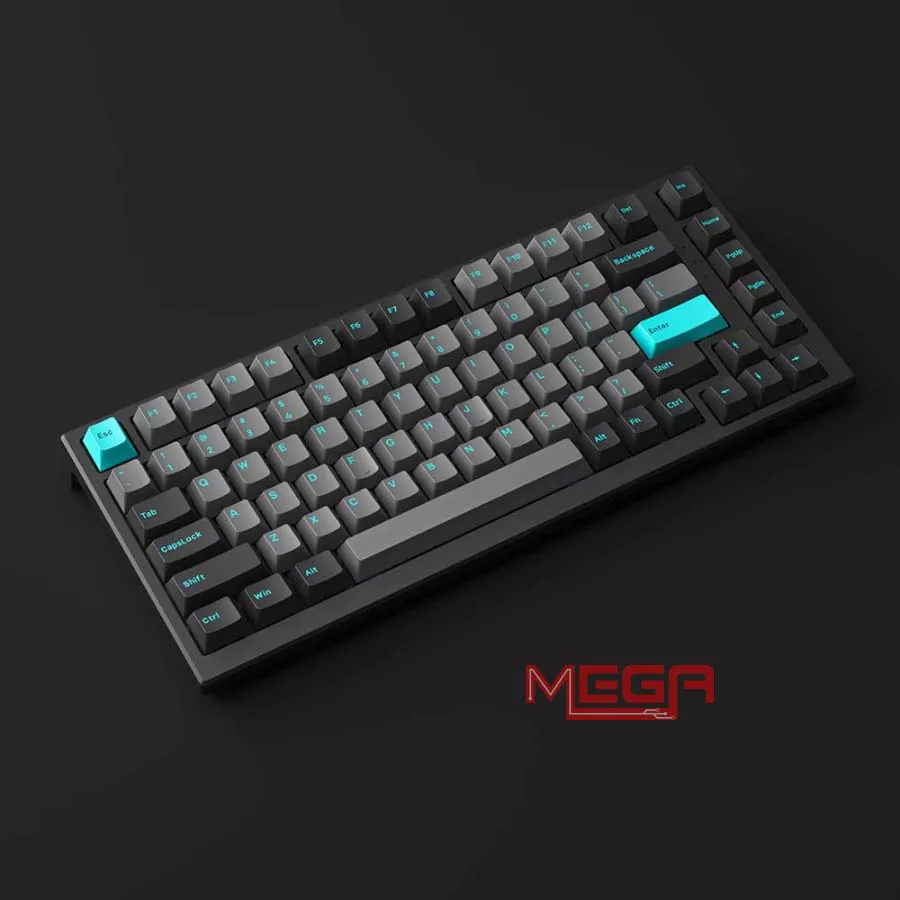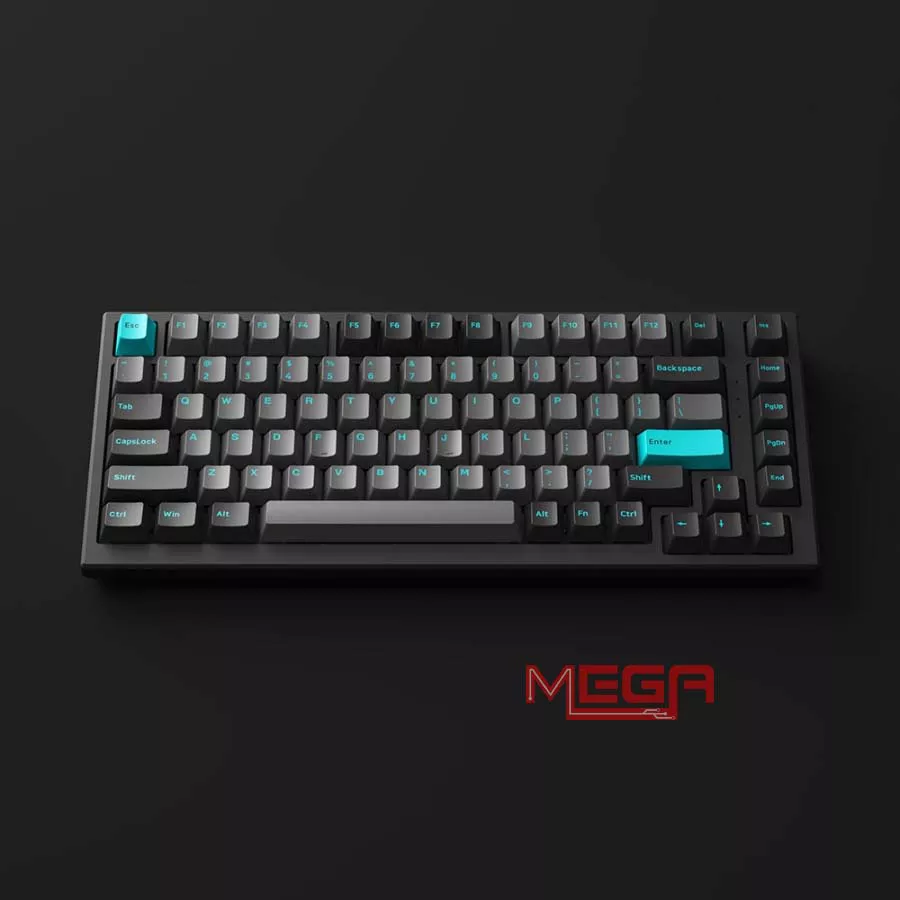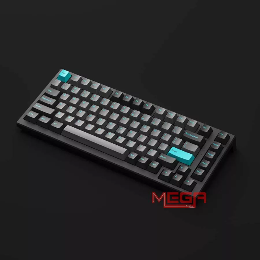 Bàn phím được trang bị keycap PBT Double-shot cho độ bền cao, hạn chế hiện tượng bóng phím sau thời gian dài sử dụng. Phối màu Black & Cyan tạo cảm giác trẻ trung, nổi bật nhưng không quá rối mắt. Phần khung bàn phím có độ hoàn thiện chắc chắn, trọng lượng đủ đầm để hạn chế xê dịch khi gõ nhanh hoặc thao tác mạnh khi game.
