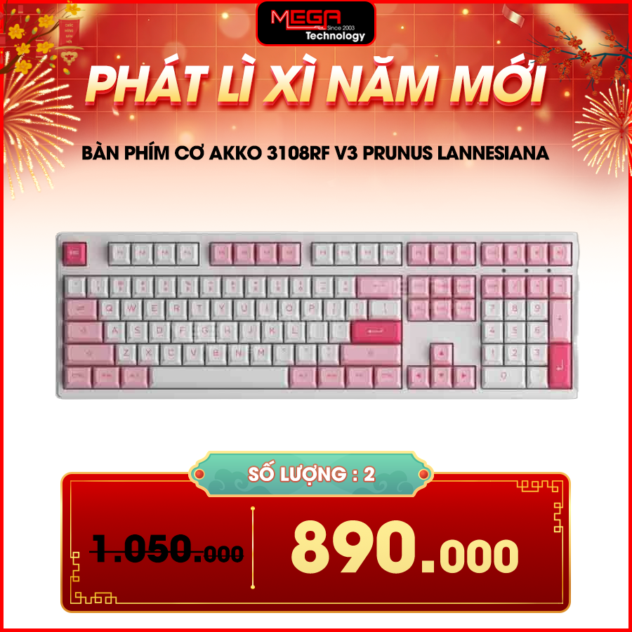 Bàn phím cơ AKKO 3108RF V3 Prunus Lannesiana Frost Pink Switch (2.4GHz / USB Type-C, No LED, No Hotswap)890.000đ |