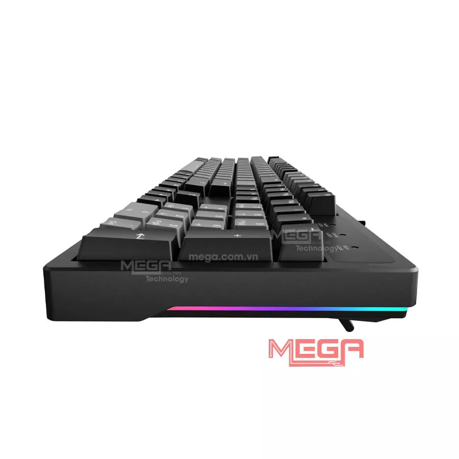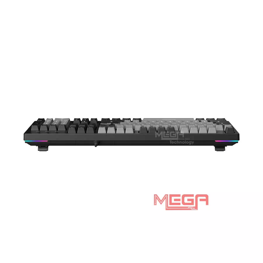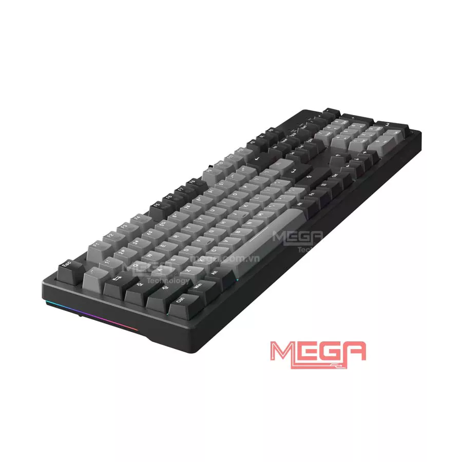 Bàn phím này trang bị LED Rainbow kết hợp dải LED hai bên thân bàn phím. Hệ thống ánh sáng giúp phím dễ nhìn trong điều kiện thiếu sáng và tạo điểm nhấn cho setup. Các hiệu ứng LED được cài sẵn, có thể chuyển đổi nhanh bằng tổ hợp phím mà không cần phần mềm, phù hợp với người dùng muốn led đơn giản và dễ sử dụng.