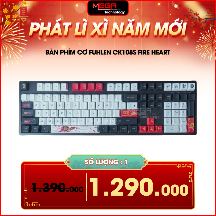 Bàn phím cơ Fuhlen CK108S Fire heart Coffe Switch mang tới layout 108 keys cực kì sáng tạo, vừa giúp tiết kiệm diện tích, vừa mang tới đầy đủ các phím chức năng để các bạn sử dụng, đặc biệt là cụm phím Numpad hỗ trợ cực tốt cho những bạn cần nhập liệu
