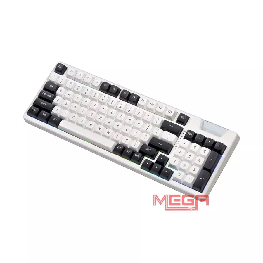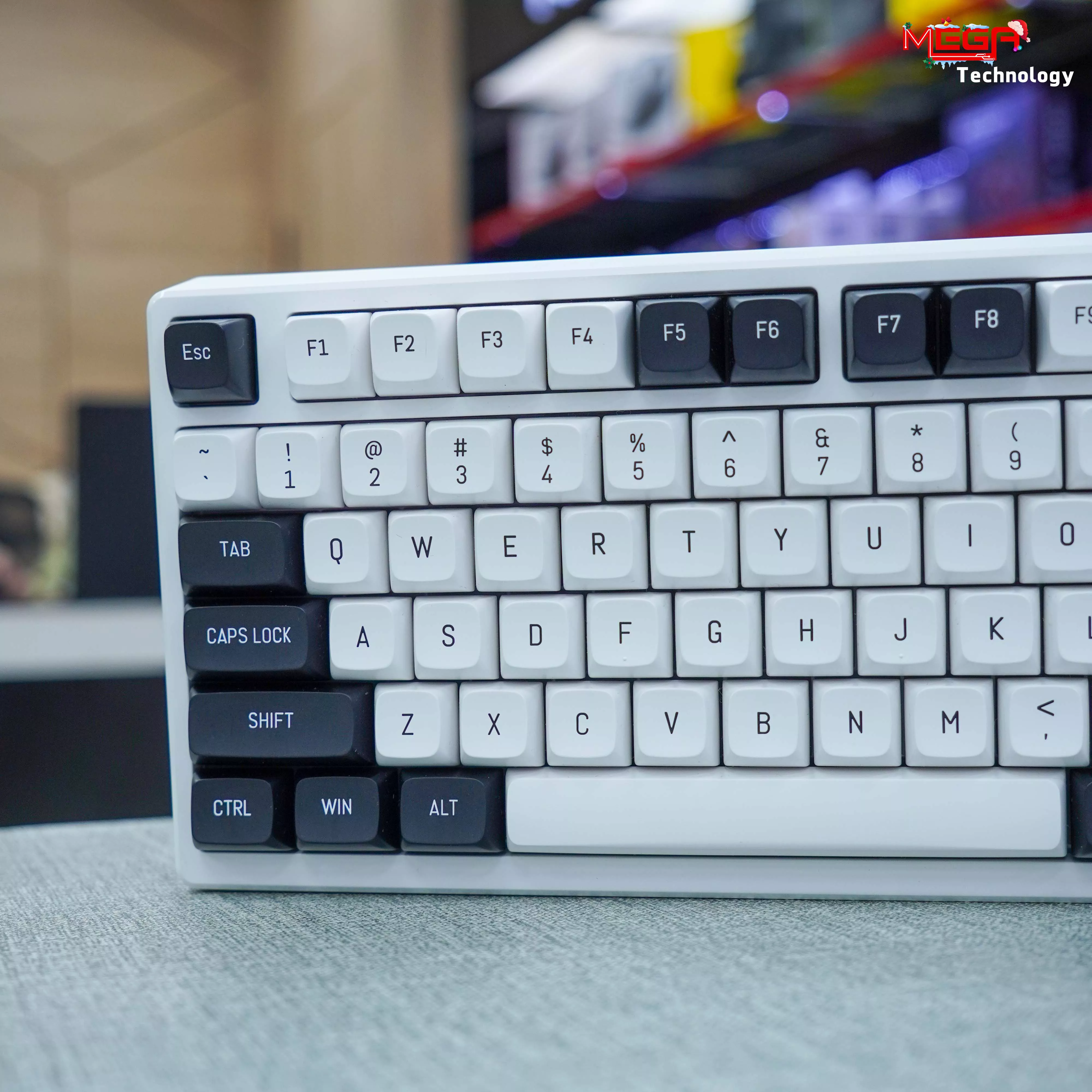 H95S Panda có thiết khế khá tối giản với màu sắc đen trắng, tạo nên sự hài hòa phù hợp với mọi góc setup. Mặc dù được thiết kế fullsize nhưng nhìn chung bàn phím vẫn nhỏ gọn, các phím được sắp xếp lại sát nhau hơn so với fullsize truyền thống, giúp giảm chiều ngang bàn phím nhưng vẫn giữ cụm phím số, phím điều hướng và các phím chức năng cần thiết. Cách bố trí này đặc biệt phù hợp với người thường xuyên làm việc với số liệu, kế toán, nhưng không muốn bàn phím chiếm quá nhiều diện tích.