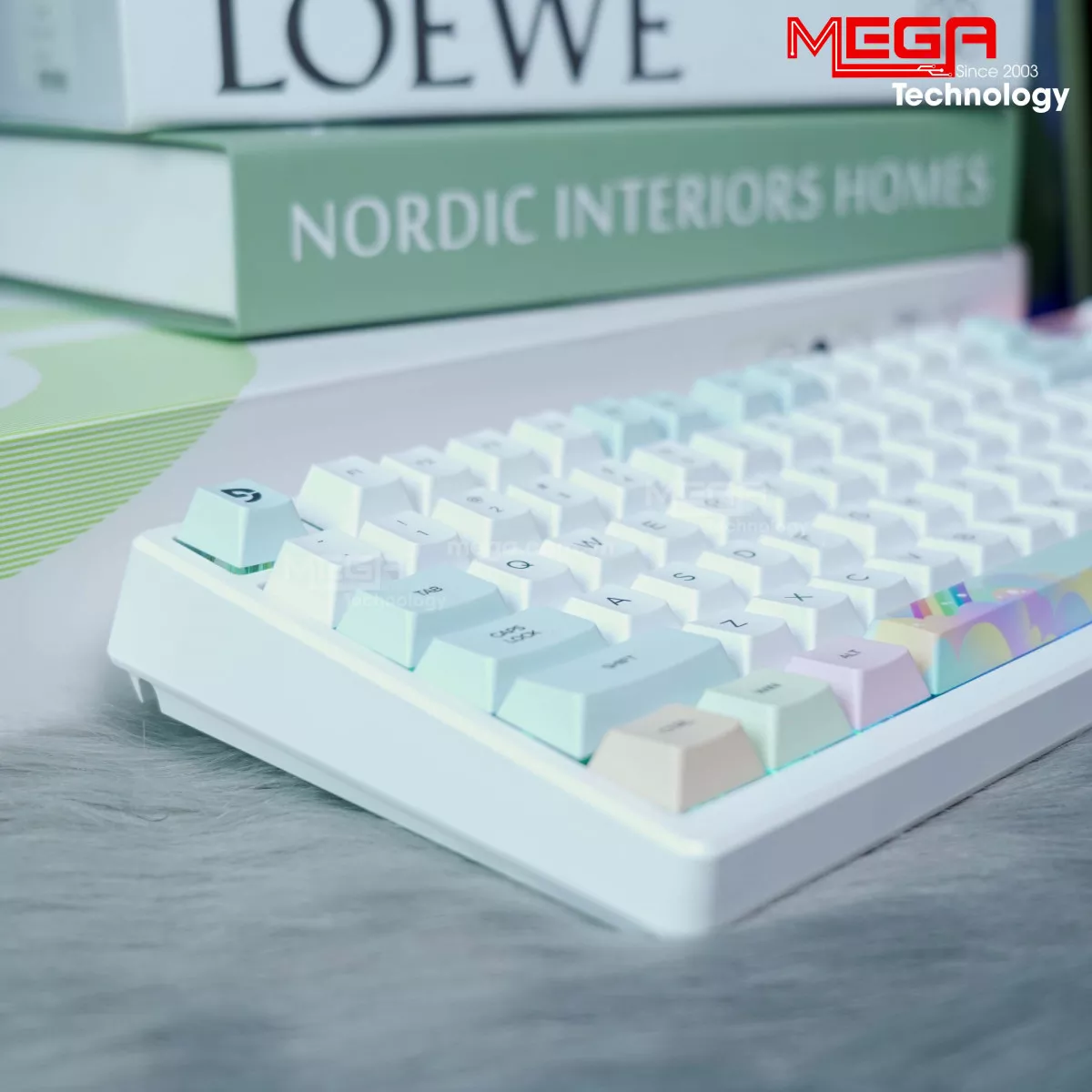 Bàn phím sở hữu bố cục 96% (có keymap), giữ nguyên trải nghiệm fullsize với dãy phím số, phím chức năng và phím mũi tên. Cách bố trí liền mạch giúp thao tác nhanh, hạn chế di chuyển tay, đặc biệt phù hợp với công việc nhập liệu, kế toán hoặc người dùng quen layout đầy đủ.