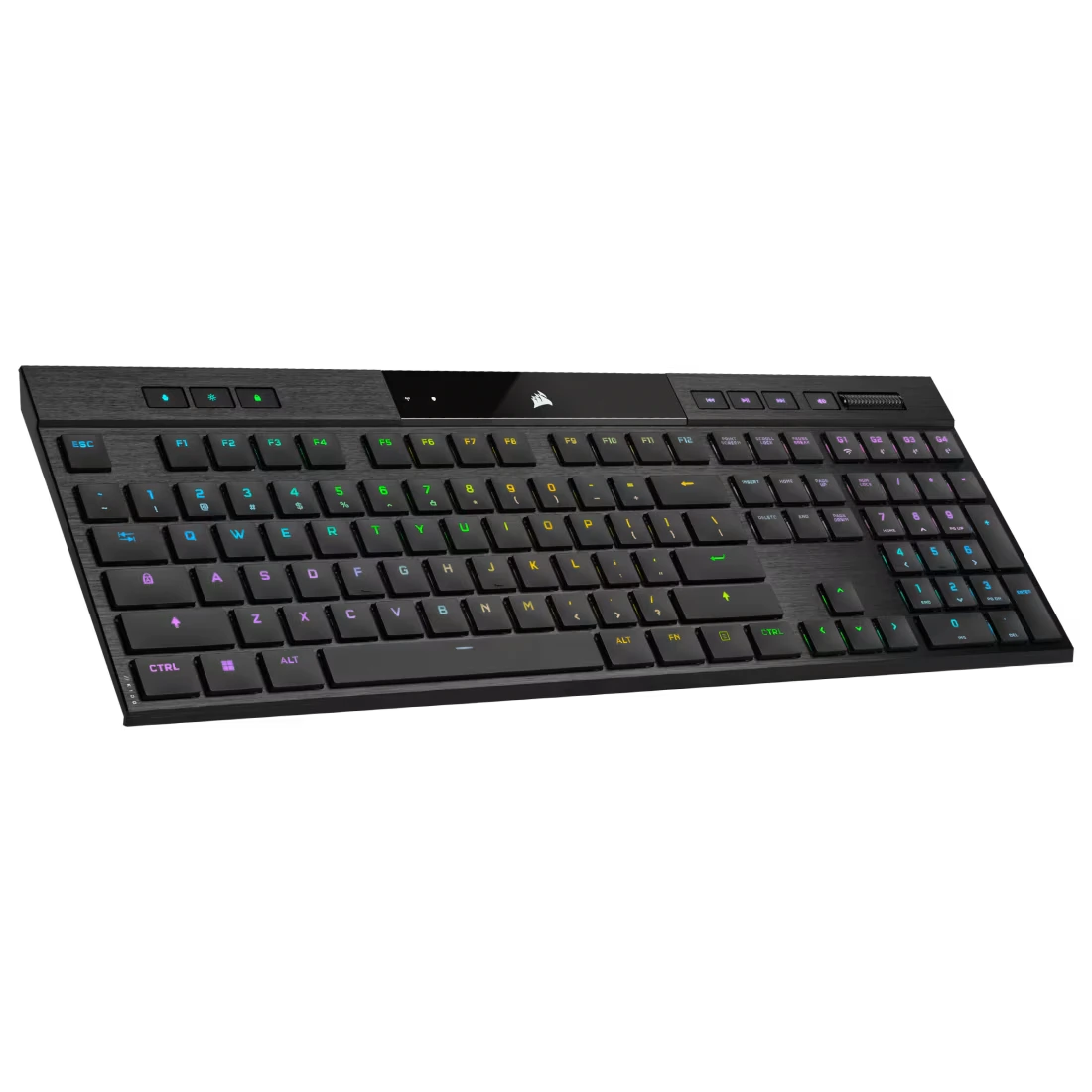 Thay vì RGB rực rỡ kiểu gaming truyền thống, Corsair K100 AIR mang đến hiệu ứng RGB thanh mảnh và tinh tế. Ánh sáng được phân bổ đều trên từng phím, tôn lên thiết kế mỏng và sang trọng, đồng thời dễ dàng tùy chỉnh qua phần mềm Corsair iCUE.
