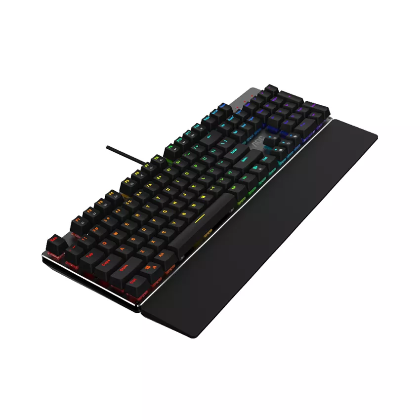 Điểm nhấn nổi bật của AOC GK500 nằm ở hệ thống đèn nền RGB đa màu cho hiệu ứng ánh sáng sống động, giúp góc setup gaming trở nên bắt mắt hơn. Keycap ABS chắc chắn kết hợp cùng phần kê tay đi kèm giúp tăng cảm giác thoải mái khi sử dụng trong thời gian dài.
