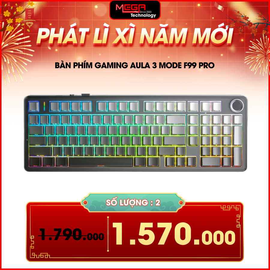 Bàn phím Gaming không dây AULA 3 mode (có núm xoay) F99 Pro Xám đen gradient, Nimbus V3 switch (0881)1.570.000đ 2.190.000đ |