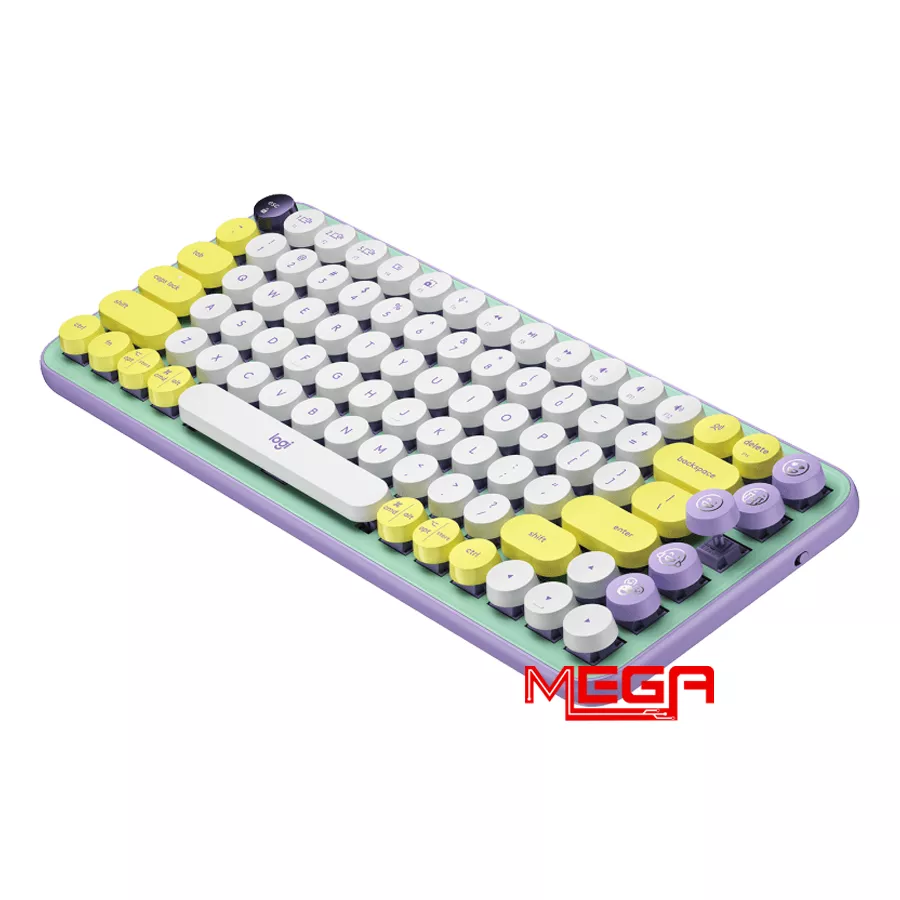 Logitech POP Keys Daydream sở hữu thiết kế phím tròn lấy cảm hứng từ máy đánh chữ cổ điển, tạo cảm giác vừa quen thuộc vừa mới mẻ. Kiểu dáng này không chỉ mang tính thẩm mỹ mà còn giúp thao tác gõ trở nên thú vị hơn. Tổng thể bàn phím hài hòa, dễ kết hợp với các setup học tập và làm việc mang phong cách cá nhân.