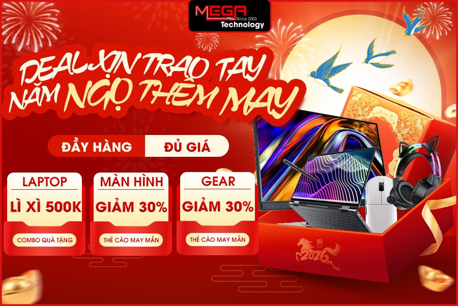 Khai xuân năm mới 2026, MEGA Technology chính thức khởi động chương trình “Deal Xịn Trao Tay – Năm Ngọ Thêm May” với hàng loạt ưu đãi công nghệ cực hấp dẫn. Đây là thời điểm vàng để game thủ, dân văn phòng và người dùng công nghệ nâng cấp laptop, build PC hay sắm gear – màn hình với mức giá tốt nhất trong năm, kèm theo vô vàn quà tặng và lì xì may mắn đầu xuân. Chương trình diễn ra xuyên suốt từ 01/02/2026 đến 28/02/2026 tại showroom MEGA Technology Đà Nẵng.