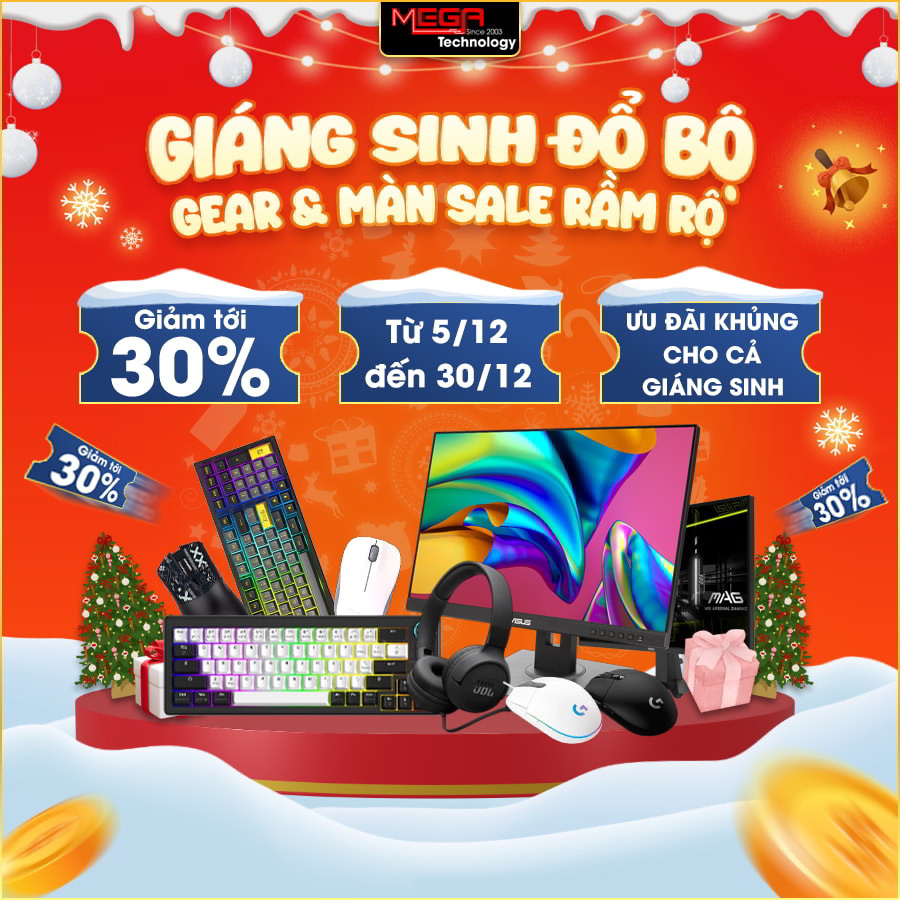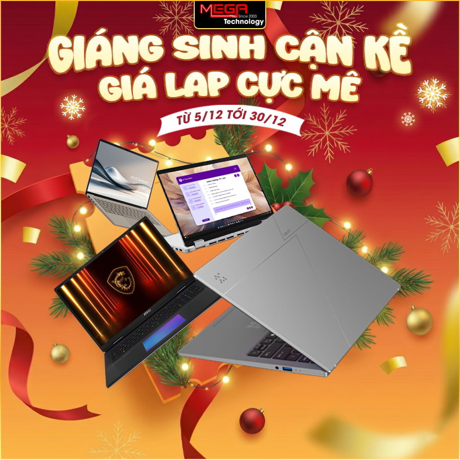 Săn Deal Giáng Sinh – Rinh Quà Công Nghệ tại MEGA Technology là chương trình ưu đãi lớn nhất tháng 12, quy tụ đầy đủ các deal tốt nhất cho Gear – Laptop – Màn hình – Combo.