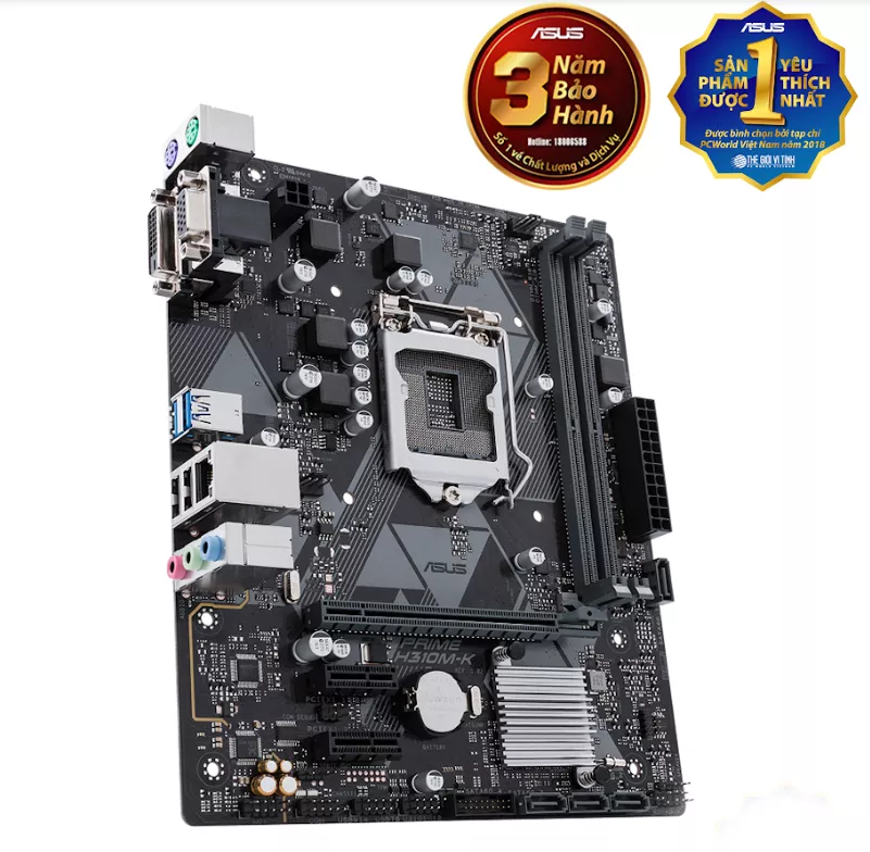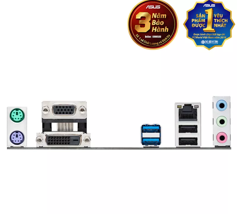 | Cổng I/O phía sau | 2 x USB 3.1 Gen 1 (A), 2 x USB 2.0 (A) 1 x DVI-D, 1 x D-Sub (VGA) 1 x Realtek 1Gb Ethernet port, 3 x Audio jacks 1 x PS/2 Keyboard port, 1 x PS/2 Mouse port |