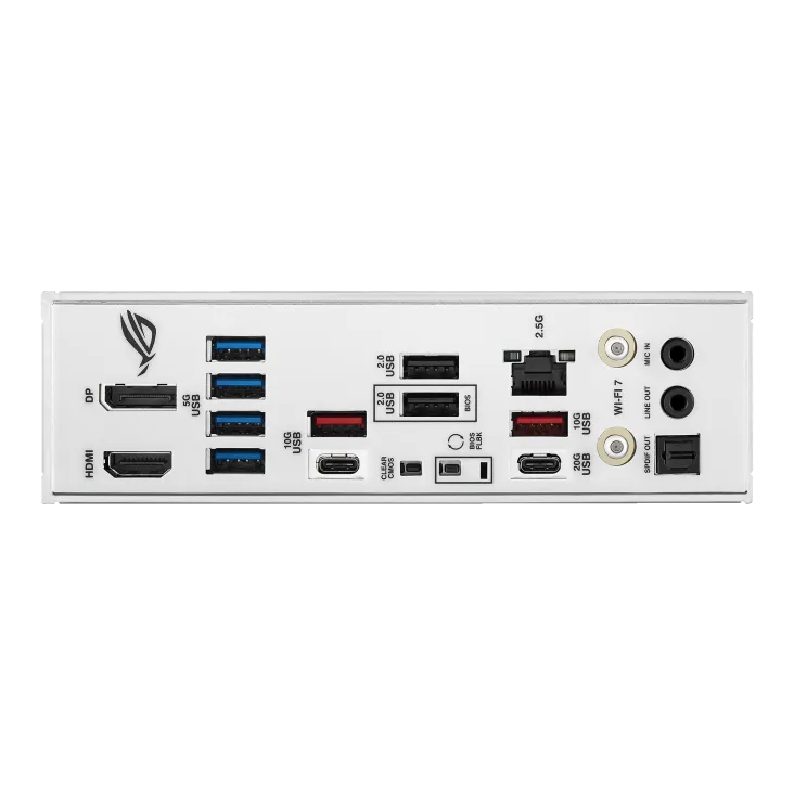 | Cổng I/O phía sau | 1 x USB4® (C), 1 x USB 10Gbps (C), 3 x USB 10Gbps (A), 4 x USB 2.0 1 x HDMI, 1 x DisplayPort, 1 x Wi-Fi Module (Q-Antenna) 1 x Intel 2.5Gb LAN, 2 x Audio jacks, 1 x Optical S/PDIF Out 1 x BIOS FlashBack™ button, 1 x Clear CMOS button |