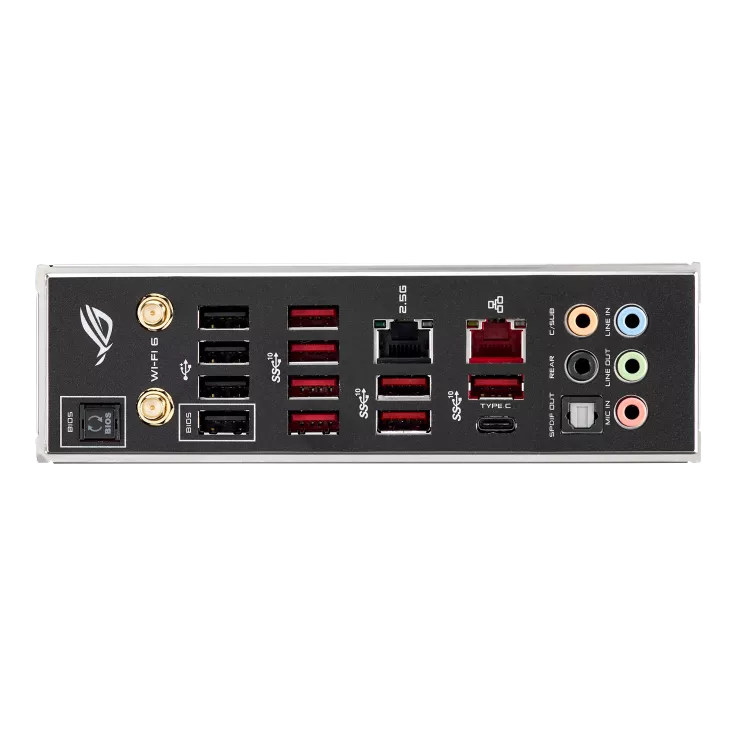 | Cổng I/O phía sau | - 8 cổng USB 3.2 Gen 2 (7 cổng Type-A + 1 cổng Type-C) - 1 nút USB BIOS FlashBack ™ - 4 cổng USB 2.0 - 1 cổng LAN 2.5G chống xung điện (RJ45) - 1 cổng xuất S/PDIF quang học - 5 giắc cắm âm thanh - 1 cổng LAN (RJ45) |