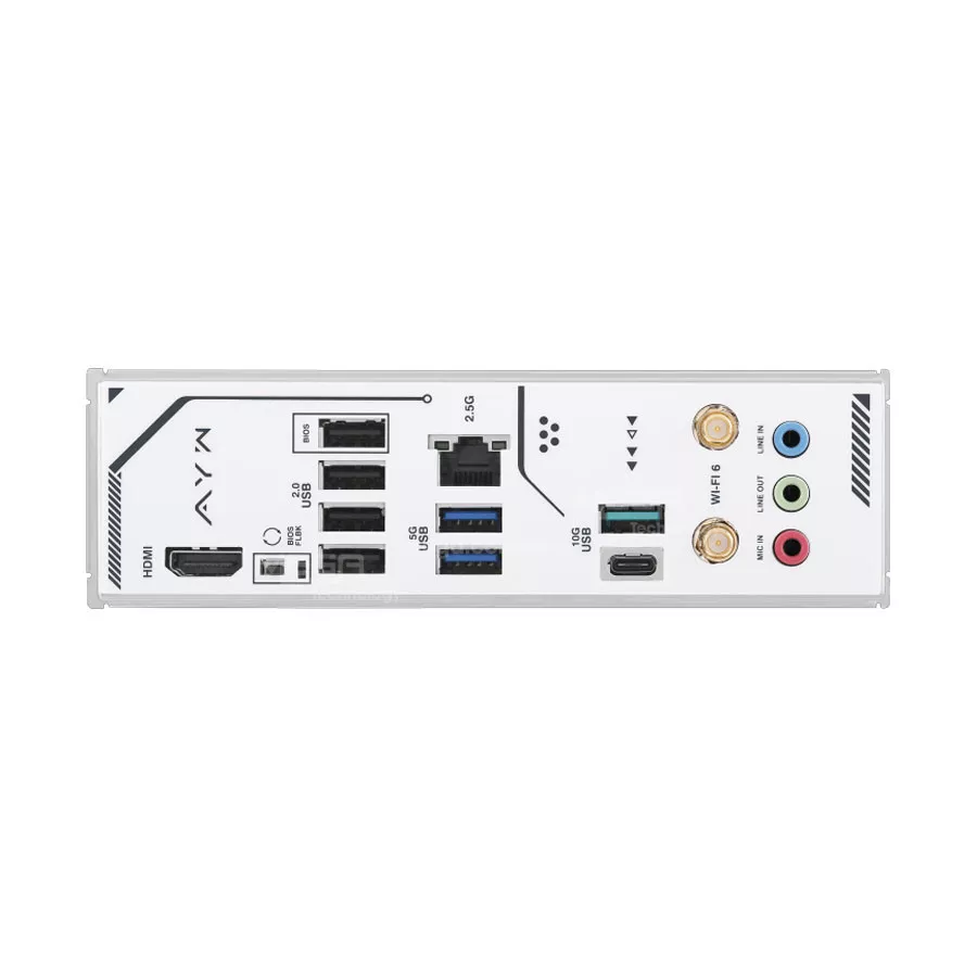 | Cổng I/O phía sau | 2 x USB 10Gbps (1xA, 1xC), 2 x USB 5Gbps, 4 x USB 2.0 1 x HDMI™ 1 x Wi-Fi Module 1 x Realtek 2.5Gb Ethernet 3 x Audio jacks 1 x BIOS FlashBack™ button |