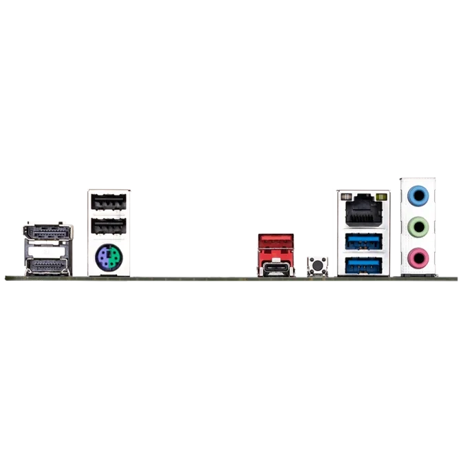 | Cổng I/O phía sau | 1 x USB 3.2 Gen 1 (Type-C) 1 x USB 3.2 Gen 2 (Type-A, màu đỏ) 2 x USB 3.2 Gen 1 (Type-A, màu xanh) 2 x USB 2.0 (Type-A, màu đen) 1 x Cổng mạng LAN RJ45 1 x Cổng PS/2 (Phím/Chuột) 3 x Jack âm thanh Nút Q-Flash Plus |