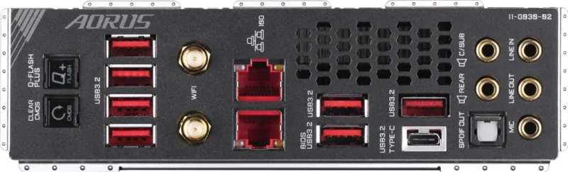 | Cổng I/O phía sau | 1 x Q-Flash Plus button, 1 x Clear CMOS button 2 x SMA antenna connectors (2T2R) 1 x USB Type-C®, 7 x USB 3.2 Gen 2 (A), 2 x USB 2.0/1.1 2 x RJ-45 ports (Dual 10GbE) 1 x optical S/PDIF Out connector, 5 x audio jacks (mạ vàng) |