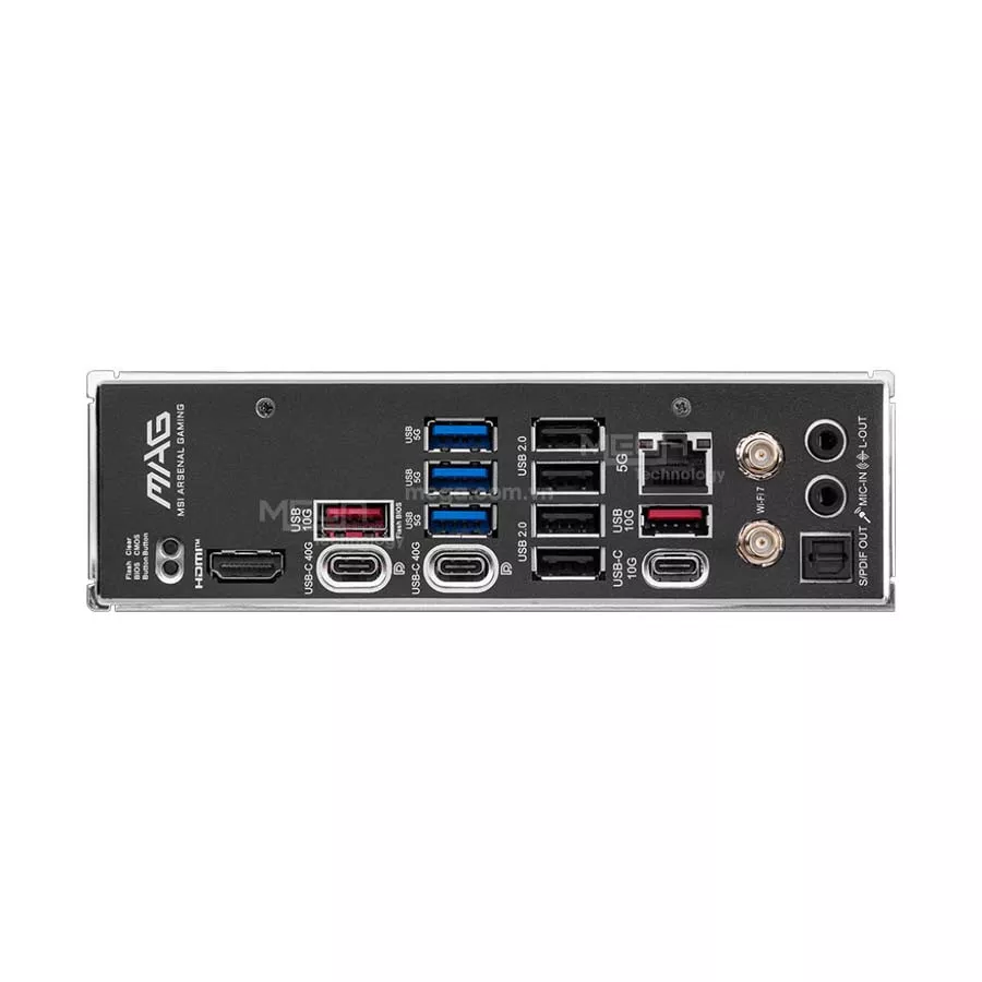 | Cổng I/O phía sau | Clear CMOS Button USB 10Gbps Type-A USB 5Gbps Type-A USB 2.0 5G LAN Wi-Fi / Bluetooth Audio connectors Flash BIOS Button HDMI™ USB 40Gbps Type-C USB 10Gbps Type-C USB 10Gbps Type-A |