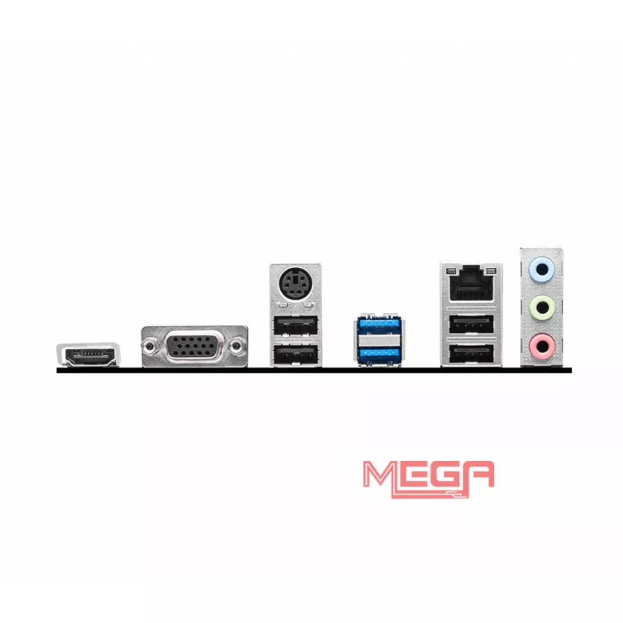 | Cổng I/O phía sau | HDMI™ VGA Bàn phím / Chuột USB 3.2 Gen 1 5Gbps Type-A Cổng LAN Đầu nối âm thanh USB 2.0 |