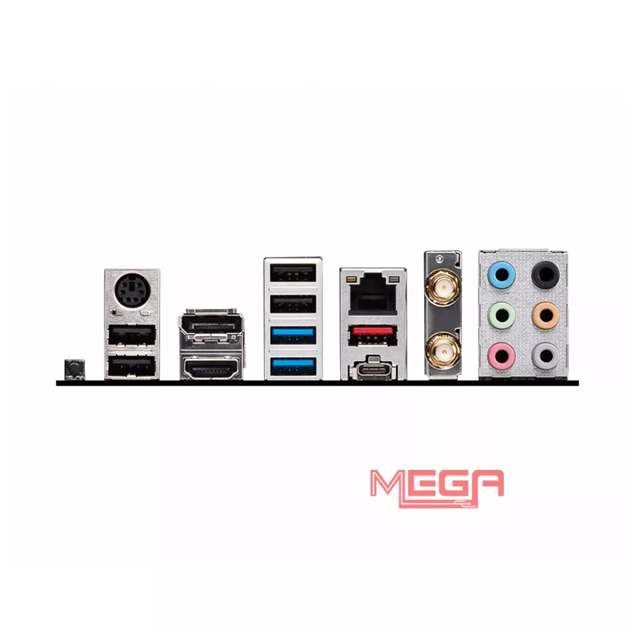 | Cổng I/O phía sau | Bàn phím / Chuột DisplayPort USB 2.0 Mạng LAN 2.5G Wi-Fi / Bluetooth Đầu nối âm thanh Nút Flash BIOS USB 2.0 HDMI™ USB 3.2 Gen 1 5Gbps (Type-A) USB 3.2 Gen 2x2 20Gbps (Type-C) USB 3.2 Gen 2 10Gbps (Type-A) |