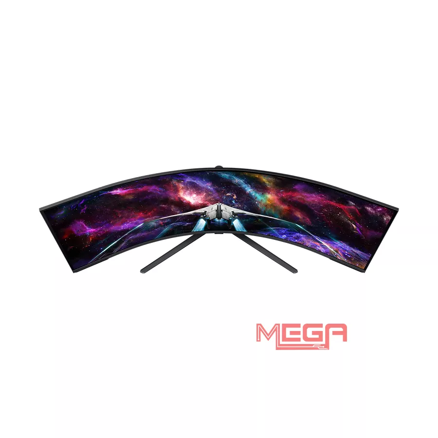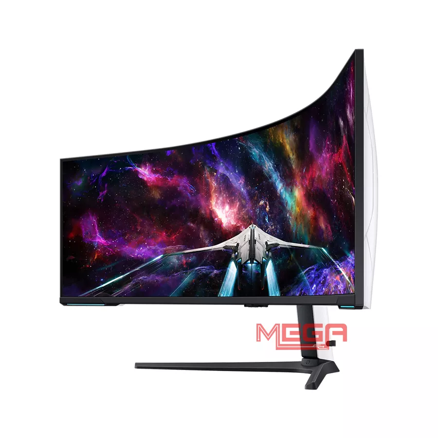 Thiết kế Thiết kế khổng lồ 57 inch với tỷ lệ khung hình 32:9 bao trùm toàn bộ tầm nhìn của bạn. Độ cong 1000R mô phỏng trường nhìn của mắt người, giúp bạn đắm chìm hoàn toàn vào thế giới ảo mà không cần xoay đầu quá nhiều, giảm thiểu mỏi mắt khi sử dụng lâu. Hệ thống đèn Core Lighting+ với công nghệ CoreSync ở mặt lưng tự động đồng bộ ánh sáng với màu sắc trên màn hình game. Ánh sáng lan tỏa ra không gian xung quanh, xóa nhòa ranh giới giữa thực và ảo. Dù có kích thước "khủng", màn hình vẫn sở hữu chân đế công thái học linh hoạt, cho phép điều chỉnh độ nghiêng, xoay và độ cao, cùng thiết kế mặt lưng trắng đen tương phản đậm chất tương lai (Futuristic).