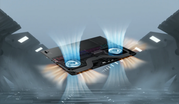 Acer trang bị cho Nitro V 16S ProPanel hệ thống tản nhiệt kép 2 quạt với 8 luồng khí và 4 khe thoát nhiệt. Thiết kế này giúp máy duy trì nhiệt độ ổn định khi chơi game nặng hoặc render video trong thời gian dài.