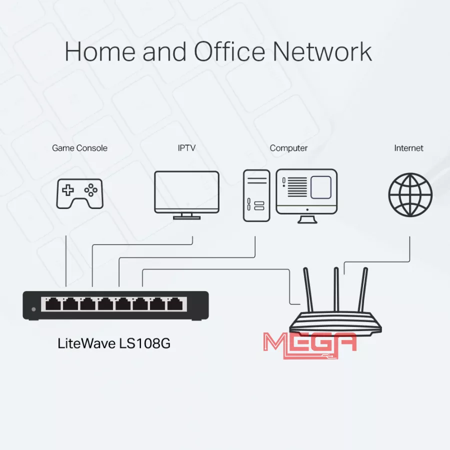 | Ports | 8 × RJ-45 10/100/1000 Mbps Auto-Negotiation, Auto-MDI/MDIX |