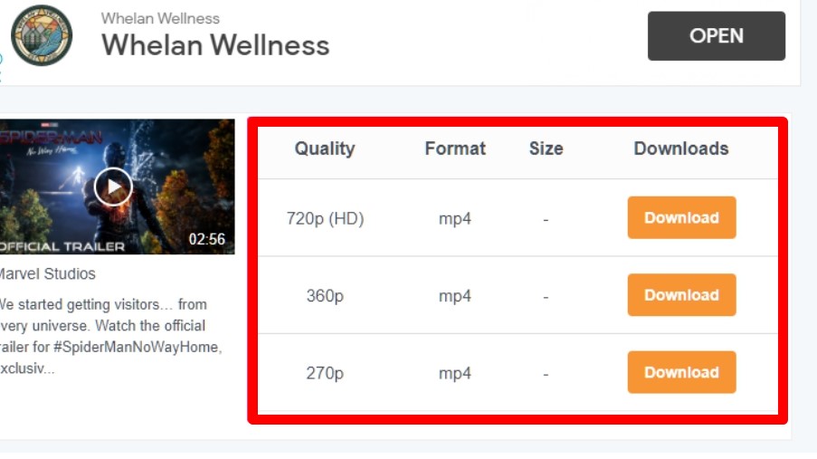 Bước 3: Lúc này trên màn hình, tại trang web sẽ hiển thị 3 tùy chọn chất lượng video bao gồm: 720p (HD), 360p, 270p ở định dạng MP4. Tiếp đó, bạn nhấn vào nút Download ở chất lượng 720p (HD).