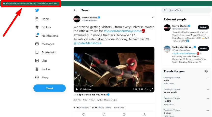 Bước 1: Đầu tiên bạn cần copy liên kết của video trên Twitter bạn muốn tải về máy tính.